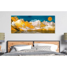 Tema - peisaj, natura, apa, cer, luna, munte, decorativ, decor interior, auriu, elegant, living, dormitor, hol, birou.